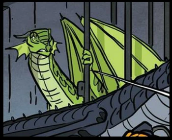 Kuolemantuoja kertoo yösiipien luulleen sadesiipien antautuvan, kun he vangitsivat heidän kuningattarensa. Mutta he eivät tienneet, että sadesiivillä on vuoroja eikä kukaan huomannut Säihkeen katoamista. Säihke vahingossa aiheutti myrkyllään Koston arvet, minkä takia Kosto vihasi sadesiipiä ja Säihke pantiin vankityrmään. Hän oli Kuolemantuojan vankityrmän vierässä. Tulivuorenpurkauksen jälkeen Gloria ja Tähtimö vapauttavat hänet. Hän oli peloissan ja hänellä oli kirkkaat haponvihreät suomut. Hän kiljui laavan tulevan seinistä ja panikoi ja kertoi heidän kaikkien kuolevan. Lopussa hän pääsi takaisin sademetsään. |